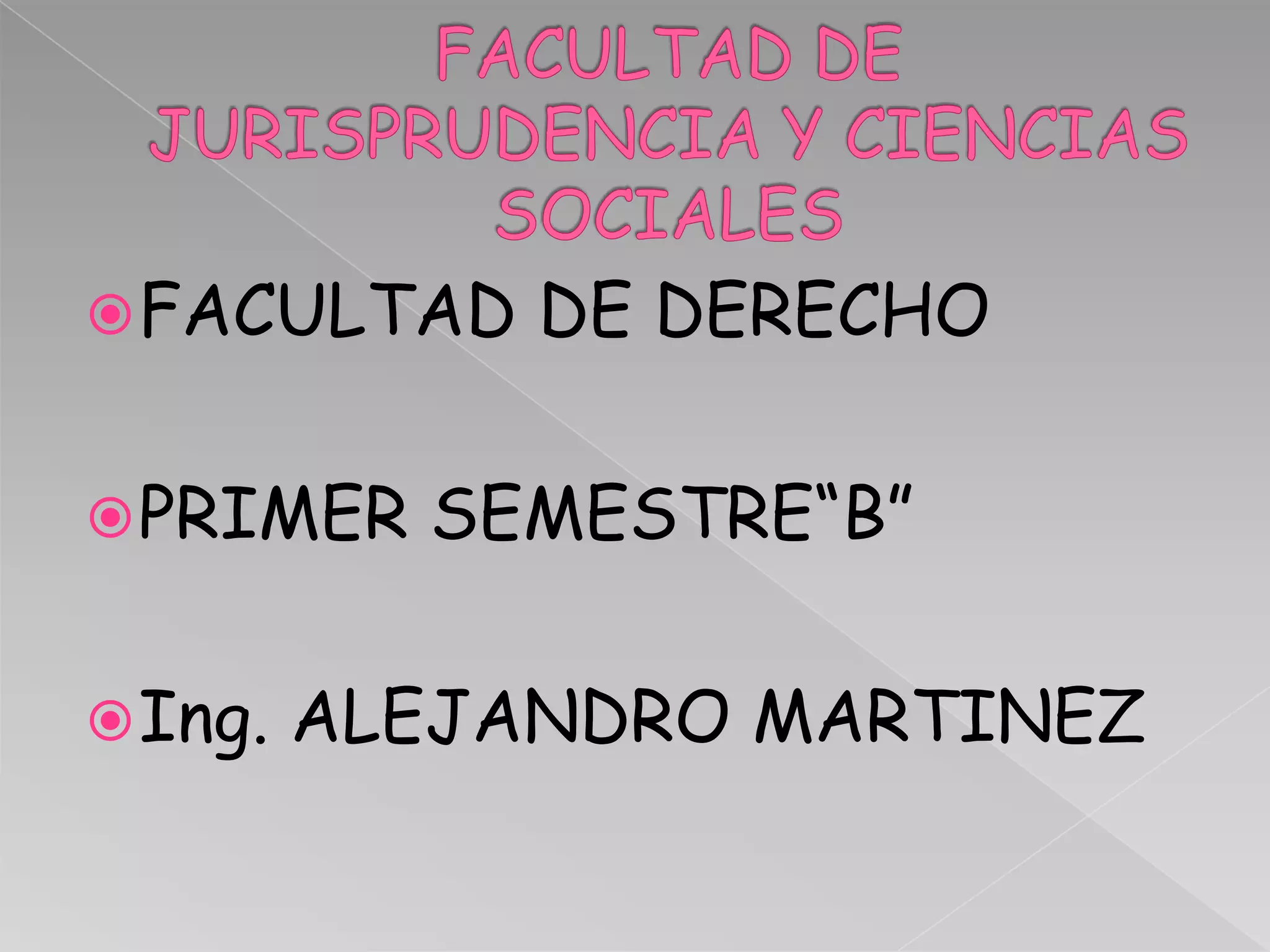 La facultad de derecho presenta un curso de informática para el primer semestre "B" sobre las partes del computador y sus funciones básicas impartido por el ingeniero Alejandro Martínez. El curso está dirigido a los estudiantes Mauricio Solis, Carlos Vivanco, Cristina Núñez, Cristian Martínez y Karen Velastegui.