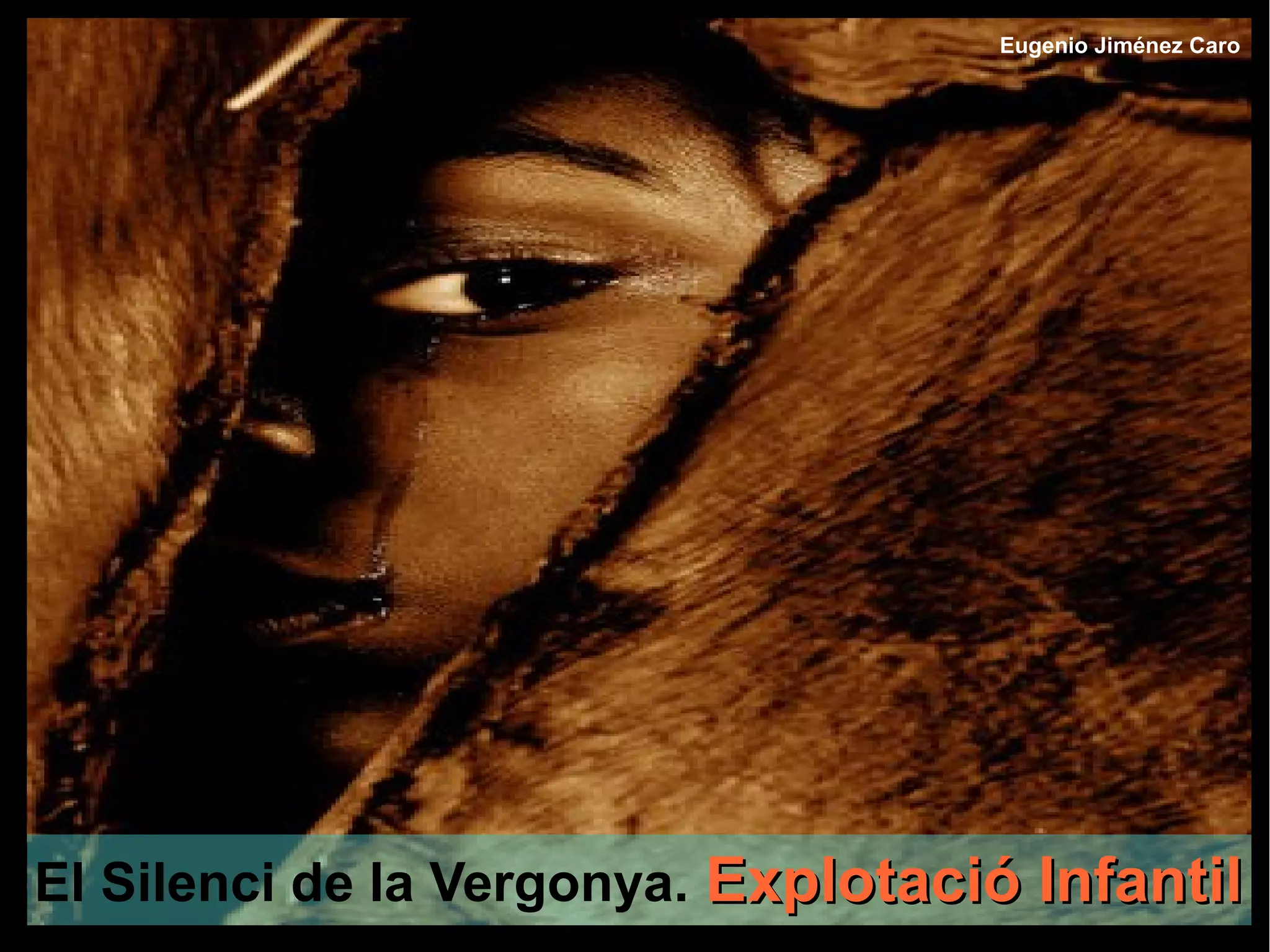 Este documento trata sobre la explotación infantil en diferentes contextos como la mendicidad, el comercio infantil, el trabajo en minas y condiciones laborales extremas y abusivas. Se incluyen imágenes que muestran niños en situaciones de pobreza, trabajando en condiciones peligrosas y realizando jornadas laborales completas desde una edad temprana, lo que pone en riesgo su salud, educación y desarrollo.