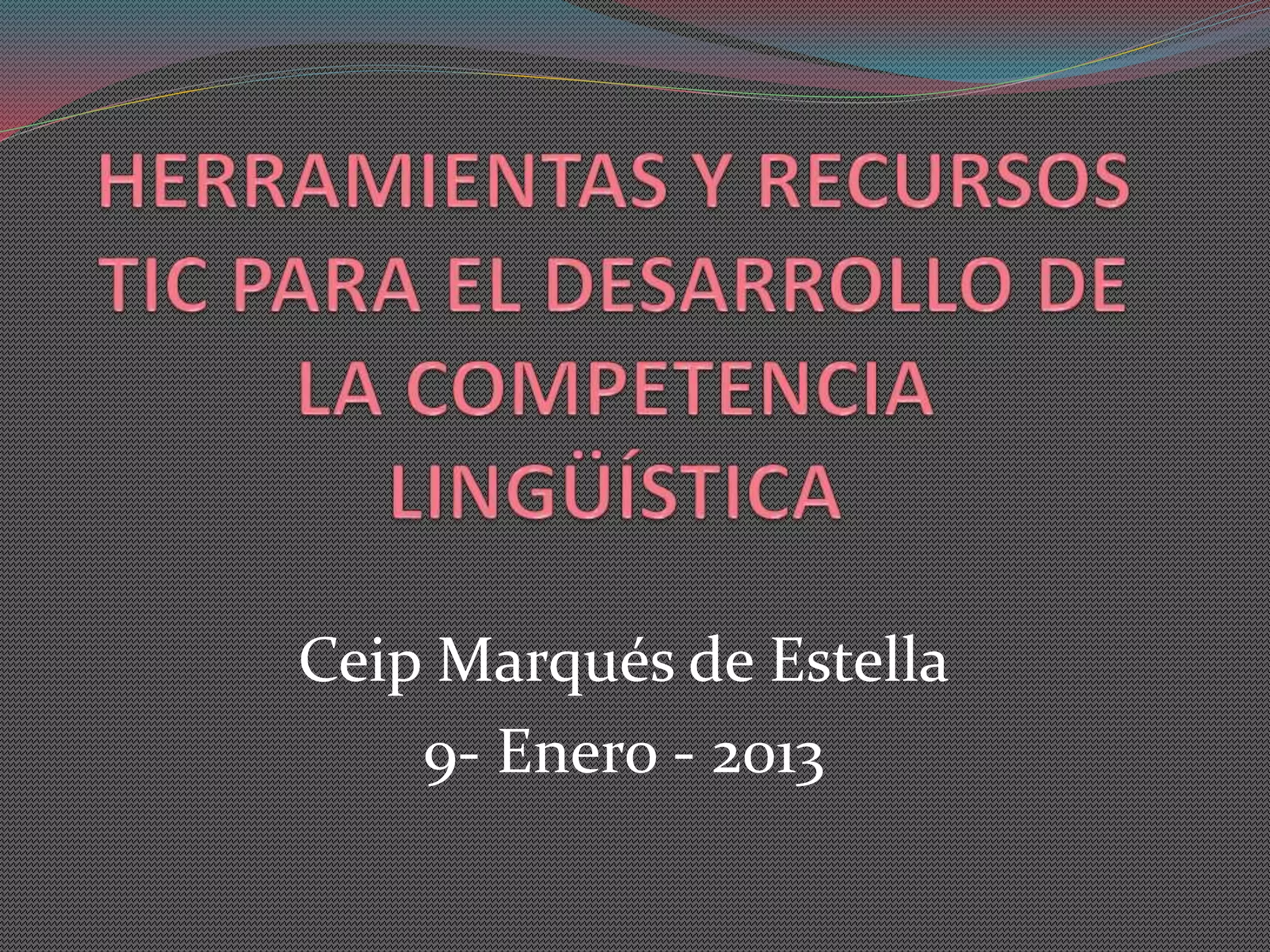 Este documento presenta una sesión sobre el desarrollo de la competencia lingüística y el uso de las TIC en el aula. Se discuten conceptos como las competencias lingüísticas, los ámbitos sociales del lenguaje y el proceso de enseñanza y aprendizaje. También se describen recursos digitales como programas, páginas web y herramientas para integrar las TIC en las actividades diarias y apoyar las habilidades lingüísticas de los estudiantes. Finalmente, se propone una temporalización de 20