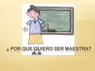 Este documento presenta las razones por las que la alumna quiere ser maestra. Su principal motivación son los niños y su deseo de ayudarlos a alcanzar sus metas a través de la educación. Ella cree que la educación es la herramienta más poderosa y quiere asegurarse de que todos los niños de México tengan acceso a ella. Ser maestra significa guiar a los niños y enseñarles de manera didáctica con paciencia, amor y apoyo constante, no solo dentro del aula sino en todo momento.