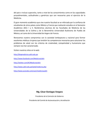 La facultad de medicina de la universidad recibió la acreditación de su calidad por el Consejo Nacional de Evaluación, Acreditación y Certificación de la Educación Superior. La comisión evaluadora estuvo compuesta por reconocidos expertos médicos. Los estudiantes de la facultad han tenido éxito en concursos nacionales de internado en hospitales públicos. Además, la facultad recibirá estudiantes de intercambio de México y Francia en los próximos semestres.
