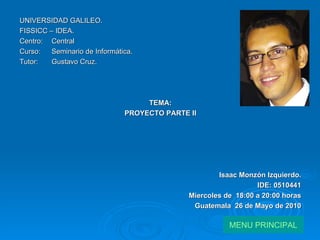 Este documento presenta un proyecto de seminario de informática. Cubre temas como publicar páginas web, presentar archivos en PowerPoint, crear videos en Movie Maker, y definir términos como domótica, blogs, malware y phishing. El autor concluye que completar este tipo de proyectos le brinda conocimientos tecnológicos y recomienda que los usuarios se mantengan informados sobre riesgos de Internet.