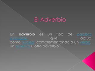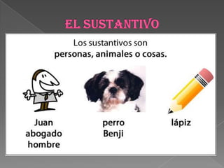 El documento describe los diferentes tipos de sustantivos, adjetivos, verbos, adverbios y pronombres. Explica que los sustantivos pueden ser comunes, individuales, colectivos, propios, concretos, abstractos, gentilicios, patronímicos, compuestos, depreciativos y derivados. También describe los diferentes tipos de adjetivos, verbos, tiempos verbales, modos y formas verbales. Además, explica las categorías de adverbios y los diferentes tipos de pronombres como personales, demostrativos y posesivos. Por último,