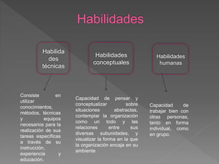 El documento describe los elementos clave de la estructura organizativa de una empresa, incluyendo la especialización laboral, departamentalización, cadena de mando, control y delegación. Explica que la estructura organizativa asigna responsabilidades para lograr los objetivos de la empresa de manera eficiente mediante la división y coordinación del trabajo.