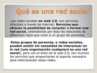 Este documento presenta una introducción a las redes sociales y contiene secciones sobre las características, ventajas y desventajas, ejemplos e implicaciones del uso de las redes sociales. Cinco estudiantes contribuyeron al documento y Mikel García Markina creó la presentación en PowerPoint.