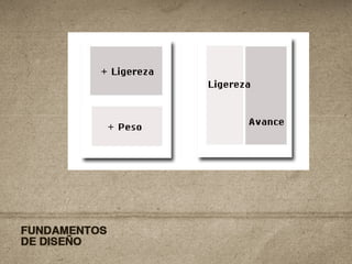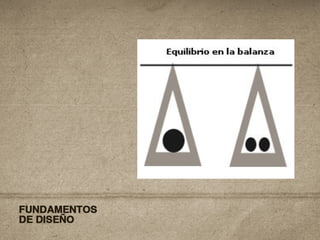 La composición visual busca crear equilibrio entre los elementos mediante la distribución del peso visual. Los elementos en la parte superior o derecha transmiten sensación de ligereza y avance, mientras que los de la parte inferior o izquierda transmiten mayor peso. No existe una composición perfecta, sino que depende del resultado final buscado equilibrando formas y líneas de mayor y menor importancia a través de la simetría o asimetría.