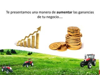 Maqtec es el distribuidor oficial de tractores agrícolas de las marcas más importantes a nivel mundial y ofrece servicio y refacciones de maquinaria agrícola en todo México. El documento propone una manera sencilla para que otros negocios ganen comisiones recomendando a clientes potenciales de tractores a Maqtec, donde recibirían el 3% de la factura por cada venta.