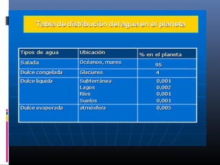 La biósfera incluye la atmósfera, la hidrósfera, y la litósfera. La hidrósfera se refiere al agua en sus tres estados y desempeña un papel crucial en la regulación climática y en hacer posible la vida debido a sus propiedades únicas como su alta capacidad calorífica y su comportamiento anómalo al congelarse. El agua se somete a un proceso de potabilización que incluye tamizado, coagulación, sedimentación, filtración y cloración para eliminar impurezas y