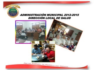 El documento resume las actividades y logros de la Dirección Local de Salud del municipio de Carolina del Príncipe entre 2012-2015. Obtuvieron 90 puntos de 100 en el proceso de certificación realizando actividades como mejorar los reportes de vacunación y funcionamiento del consejo territorial de salud. Se aprobaron proyectos de atención al adulto mayor y atención primaria en salud. También se realizaron campañas de salud mental, atención al adulto mayor, escuelas de padres y programas para personas con discapacidad.