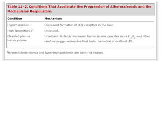 1. La ateroesclerosis es la principal causa de muerte en países desarrollados y sus complicaciones incluyen enfermedades cardíacas, accidentes cerebrovasculares y problemas vasculares periféricos.