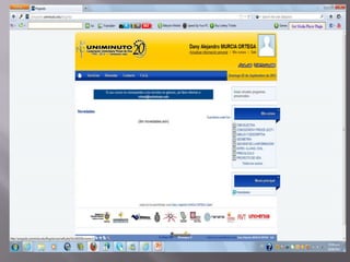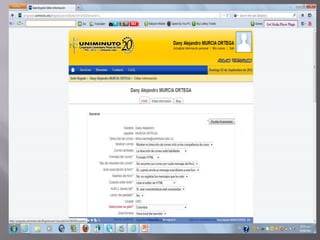El documento proporciona instrucciones para acceder y utilizar varias herramientas de comunicación y colaboración en la plataforma educativa Uniminuto, incluyendo cómo acceder al correo estudiantil, cambiar la firma, unirse o crear grupos, compartir documentos en línea, acceder a aulas virtuales, actualizar la información personal y usar la mensajería instantánea.