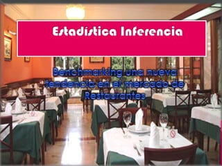 El documento describe un estudio sobre las estrategias de benchmarking utilizadas por restaurantes en Veracruz y Boca del Río. Se muestrearon 25 de los 55 restaurantes más conocidos de la zona para analizar sus tendencias de éxito. El cálculo de muestra se realizó con una población de 55 restaurantes, una desviación estándar de 3 y un nivel de confianza del 95% con un error de 0.9, lo que arrojó una muestra necesaria de 25 restaurantes.