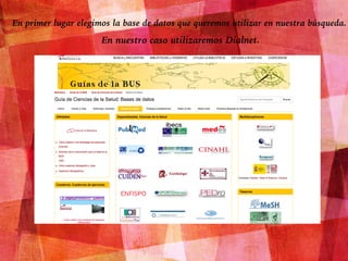 El documento describe el proceso de búsqueda y descarga de documentos académicos utilizando las bases de datos Dialnet y Fama+. Se inicia con la selección de palabras clave y conectores en Dialnet para encontrar documentos, algunos de los cuales se pueden descargar completamente, mientras que otros requieren búsqueda en Fama+. Finalmente, se selecciona el texto a partir de las indicaciones de Dialnet para obtener el contenido completo deseado.