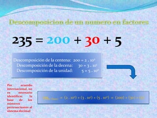 El documento describe los sistemas numéricos binario, decimal, romano y babilónico. Explica cómo convertir números entre los sistemas binario y decimal usando división repetida y cómo sumar números binarios mediante la tabla de suma binaria y llevando el 1.