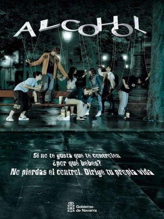 El documento habla sobre los peligros del alcoholismo y el consumo excesivo de alcohol. Menciona que el alcoholismo puede causar multas, encarcelamiento, dañar la salud física y mental de una persona, y promover la violencia y la infidelidad. También señala que el alcoholismo es la principal causa de accidentes y puede dañar la vida o conducir a la muerte.