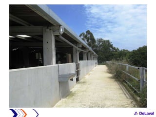 El documento describe varios sistemas de producción lechera intensiva y estrategias para el bienestar de las vacas. Se discuten alternativas como sistemas a corral o de estabulación libre, así como consideraciones de diseño como dimensiones de potreros, sombra, pisos y ventilación. También se analizan opciones para reducir el estrés térmico de las vacas como ventiladores, aspersores o nebulizadores, así como diseños de cubículos, comederos y bebederos que maximicen el confort y bienestar de los animal