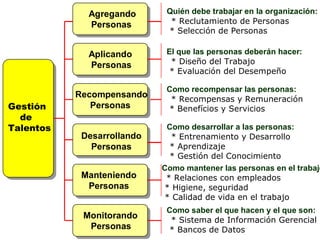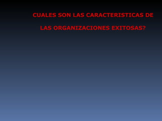 Las organizaciones exitosas tienen características como producir riqueza, durar mucho tiempo, no tener conflictos duraderos, ser innovadoras, flexibles, admiradas e inspiradoras para otros, tener una cultura única y ser excelentes lugares para trabajar. La fórmula del éxito incluye conocer a los clientes, crecimiento moderado, aprovechar oportunidades, innovación constante y reconocer el talento. Para lograrlo, las organizaciones deben transformar a las personas en talentos, luego en capital humano, capital intelectual y finalmente en