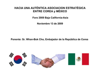 El embajador de Corea en México, Sr. Whan-Bok Cho, destacó la importancia de la relación entre ambos países, que data desde la inmigración coreana en 1905 y se ha fortalecido desde el establecimiento de relaciones diplomáticas en 1962. Se enfatizó el dinamismo de la economía coreana y la creciente cooperación en comercio, energía limpia y cultura, junto con el reconocimiento de México como un socio estratégico. Finalmente, se subrayó la necesidad de una colaboración a largo plazo y un entendimiento mutuo, promoviendo una amistad más profunda entre ambos pueblos.