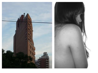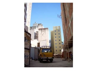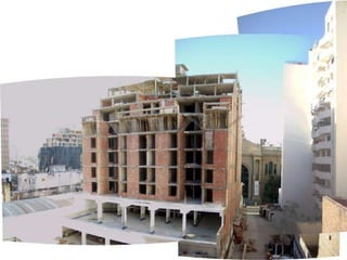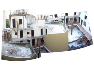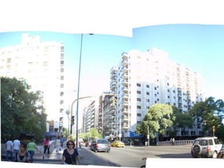 El documento describe un terreno en Santa Rosa y los edificios colindantes, y registra el entorno desde diferentes alturas, incluyendo vistas desde arriba, desde una altura intermedia y del entorno lejano y cercano.