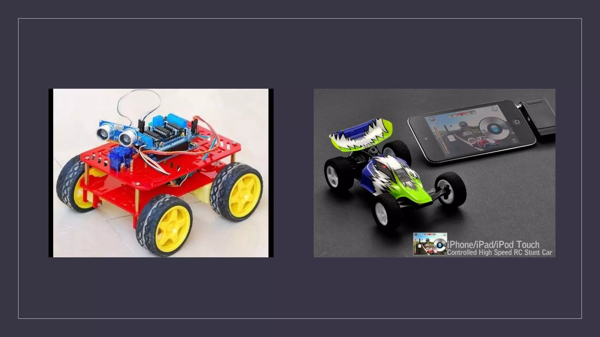 Ejemplos de usos de Arduino, incluyendo un brazo robótico y autos a control remoto.