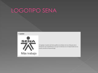 El documento describe el rol del SENA en proveer formación profesional integral a los trabajadores colombianos para contribuir al desarrollo social, económico y tecnológico del país. También detalla los objetivos del SENA para el 2020, incluyendo contribuir a la competitividad de Colombia a través de aportes a la productividad, generación de empleo, fuerza laboral innovadora, y calidad de formación entre otros. Además, presenta el sistema Sena Sofía Plus como herramienta virtual para ofrecer cursos de formación y gestion