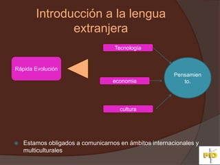 Este documento describe un programa de licenciatura en inglés. El programa se enfoca en desarrollar habilidades de comunicación internacional y multicultural, así como enseñanzas innovadoras y creativas. Los estudiantes deben mostrar interés en la lectura, producción de textos y una actitud abierta hacia otras personas, pueblos y sociedades. Los egresados podrán trabajar como maestros de inglés en educación básica y media, así como promover la innovación pedagógica, metodológica y social.