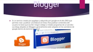 Blogspot es un servicio creado por Pyra Labs y adquirido por Google en 2003 que permite crear y publicar bitácoras en línea sin necesidad de escribir código o instalar programas en un servidor, alojando los blogs en los servidores de Google dentro del dominio blogspot.com.