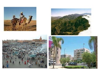 Marruecos se encuentra en el norte de África, separado de Europa por el estrecho de Gibraltar. Rabat es su capital y el árabe es su idioma oficial. La vestimenta típica incluye la chilaba para los hombres y el caftán para las mujeres. La comida tradicional consiste en platos como el tajín y el cúscus. El islam es la principal religión del país.