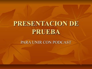 Este documento presenta una guía de 5 diapositivas para unir una presentación con un podcast, comenzando con una introducción y finalizando con conclusiones. Las diapositivas 2-4 detallan los pasos intermedios para integrar efectivamente el audio y el video.