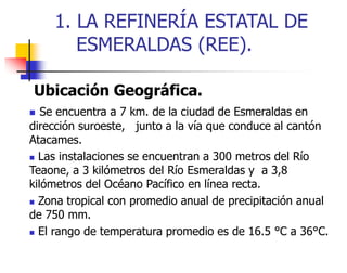Este documento describe el diseño de una estación de aforo continua para medir los caudales de efluentes tratados que son descargados del canal de la Refinería Estatal de Esmeraldas. Explica diferentes métodos y estructuras para medir caudales en canales abiertos como vertederos, aforadores de garganta larga y a régimen crítico. También analiza ventajas y desventajas de cada método para seleccionar el más adecuado para la estación de aforo de la refinería.