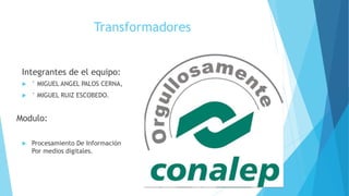 El documento describe los diferentes tipos de transformadores eléctricos, incluyendo su historia, principios de funcionamiento, componentes y aplicaciones. Explica que un transformador permite aumentar o disminuir la tensión en un circuito eléctrico de corriente alterna manteniendo la potencia. También describe transformadores trifásicos, de aislamiento, elevadores de tensión y otros tipos.