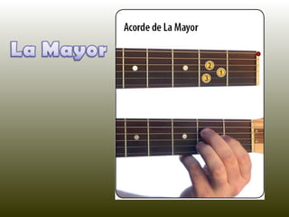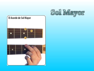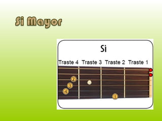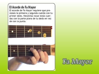 Este documento brinda consejos básicos para tocar la guitarra. Recomienda encontrar una postura cómoda antes de comenzar y proporciona un enlace a un sitio web con más información sobre cómo aprender a tocar la guitarra.