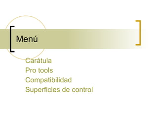 El documento describe el software de grabación digital Pro Tools. Pro Tools es una estación de trabajo de audio digital líder en la industria y utilizada ampliamente en estudios profesionales. La empresa Digidesign desarrolla Pro Tools y hardware de audio de alta calidad, lo que ha llevado a Pro Tools a convertirse en un referente en la industria de la producción musical y la postproducción de audiovisuales.