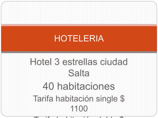 Este documento resume los pagos anuales requeridos por diferentes organizaciones de derechos intelectuales para un hotel de 3 estrellas con 40 habitaciones en Salta, Argentina. Bajo la ley, el costo anual total es de $157,552, mientras que con los convenios negociados por Fehgra el costo anual total es mucho menor a $27,910, lo que representa una diferencia de $129,642. Similarmente, para un restaurante con 2 televisores, la ley permitiría cobros del 11% de las ventas brutas totales, mientras que los conven