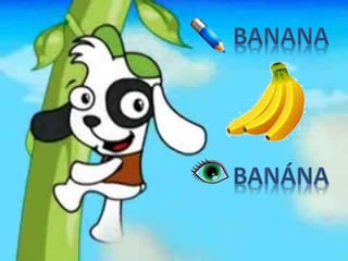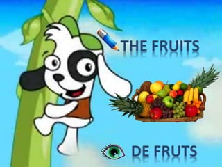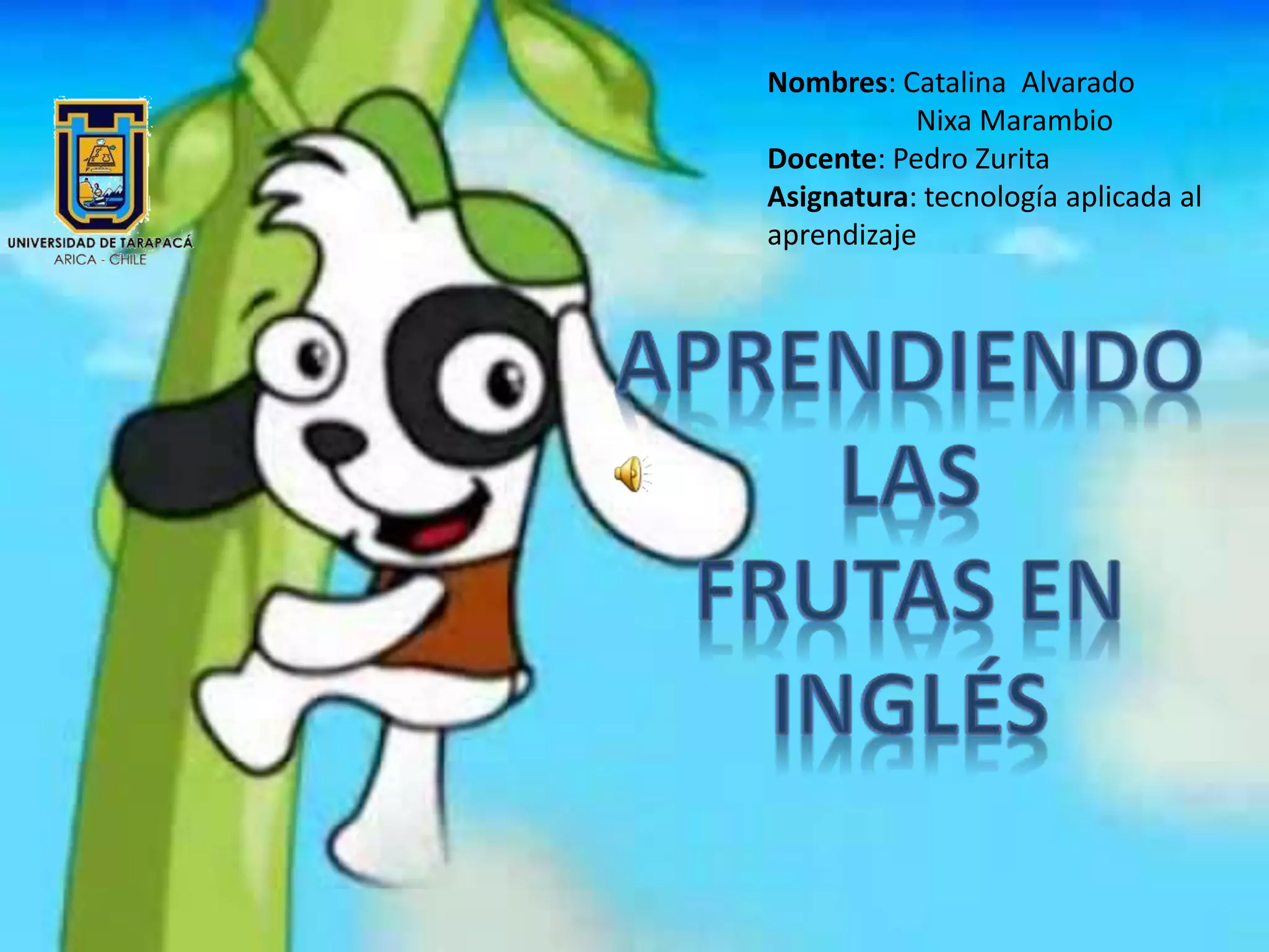 El documento lista los nombres de dos estudiantes, el nombre de su docente y la asignatura, seguido por una lista de frutas en inglés y español.