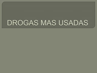 La drogadicción es una enfermedad del cerebro que se caracteriza por su cronicidad y recaídas. Los adictos seguirán siendo adictos aunque no consuman drogas, y deben mantenerse alerta para evitar recaer. Existen drogas duras que causan dependencia física y psicológica, como el alcohol y las anfetaminas, y drogas suaves que solo causan dependencia psicológica como la marihuana y la cocaína.