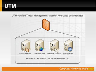 Este documento resume las características y capacidades de la plataforma de servidor de red unificada eBox. eBox ofrece gestión unificada y eficiente de servicios de red, firewall, correo, almacenamiento compartido, impresoras y más. Es software libre, fácil de usar, y se adapta bien a las necesidades de pequeñas y medianas empresas en Bolivia.