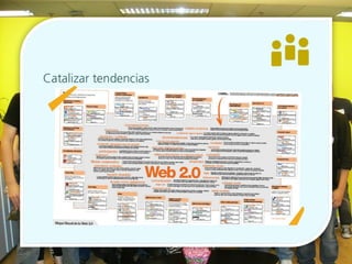 El documento describe los problemas tradicionales de las empresas como jerarquías rígidas, bajos niveles de innovación y comunicación deficiente. Propone que las herramientas de la Web 2.0 como redes sociales, blogs, wikis y plataformas de gestión de proyectos pueden ayudar a las empresas a mejorar la productividad, fomentar la colaboración y la circulación del conocimiento entre los empleados. También sugiere un proceso de 7 pasos para que las empresas adopten un modelo de empresa 2.0 que incluye entender el