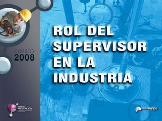 Este documento presenta los objetivos y temario de un curso para supervisores sobre prevención de accidentes y enfermedades laborales. Los objetivos generales son valorizar el rol del supervisor en prevención y dotarlos de herramientas para incorporar la seguridad en sus tareas diarias. El temario cubre funciones del supervisor, causas de accidentes, identificación de riesgos, herramientas de intervención como análisis de tareas e inspecciones, y obligaciones en materia de seguridad.