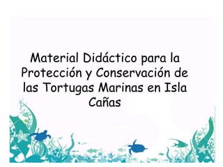 Este documento describe un proyecto de graduación para educar a los estudiantes de primaria en Isla Cañas, Panamá sobre la conservación de las tortugas marinas. Cerca de 20,000 tortugas marinas de 4 especies llegan a Isla Cañas cada año para desovar, pero parte de la población local está reduciendo su número a través de la caza y recolección de huevos. El proyecto busca crear conciencia sobre la importancia ecológica y económica de las tortugas marinas y las principales amen