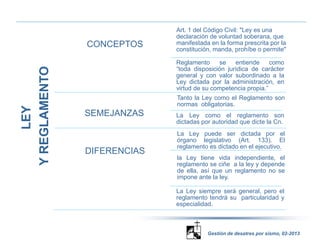 El documento aborda la normativa jurídica relacionada con la gestión de riesgos de desastres, especialmente por sismo, destacando la jerarquía de normas jurídicas y el marco institucional en Centroamérica. Presenta la Política Centroamericana de Gestión Integral de Riesgo de Desastres (PCGIRD) como un enfoque proactivo para reducir vulnerabilidades y promover el desarrollo sostenible ante desastres. Además, se enfatizan las metas y objetivos de las leyes y planes regionales que buscan fortalecer la preparación y respuesta ante emergencias.