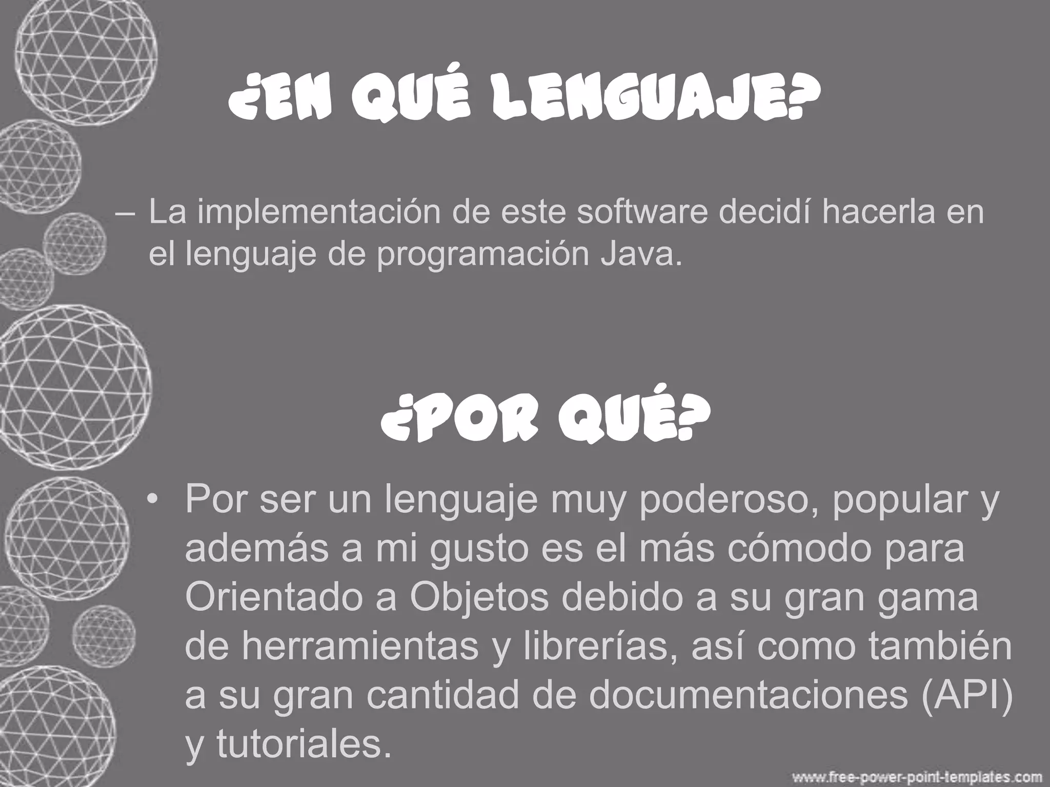 El documento presenta la implementación de un software en Java, destacando el uso de herramientas como NetBeans, JUnit y Javadocs para el desarrollo y documentación del código. Se mencionan dificultades en la programación de métodos y la necesidad de mejorar ciertas funcionalidades, así como aprendizajes personales y colaboraciones en el proceso. Finalmente, se invita a los lectores a comentar sobre el proyecto en un blog asociado.