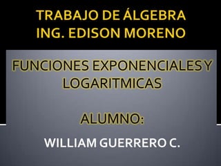 Este documento resume las funciones exponenciales y logaritmicas. Explica que 1) la función exponencial está definida para todo número real y su rango son los números positivos, 2) la función logarítmica es la inversa de la exponencial y está definida para números positivos, y 3) las funciones exponenciales son crecientes cuando la base es mayor que 1 y decrecientes cuando la base es menor que 1.