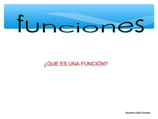 El documento describe las funciones y sus elementos básicos. Una función es una regla que asigna a cada elemento de un conjunto dominio exactamente un elemento de un conjunto de llegada. Las funciones se pueden representar de forma algebraica, gráfica, numérica o verbal. El dominio es el conjunto de entrada y el rango es el conjunto de salida de la función.