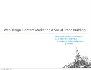 Este documento describe los servicios de un estudio creativo de marketing digital. El estudio utiliza estrategia, diseño, contenido, publicidad y tecnología para crear mensajes que aumentan las ventas y la lealtad de la marca. El estudio se especializa en el concepto de "multimarketing" que se centra en los consumidores y los contacta a lo largo del ciclo de vida de la marca.