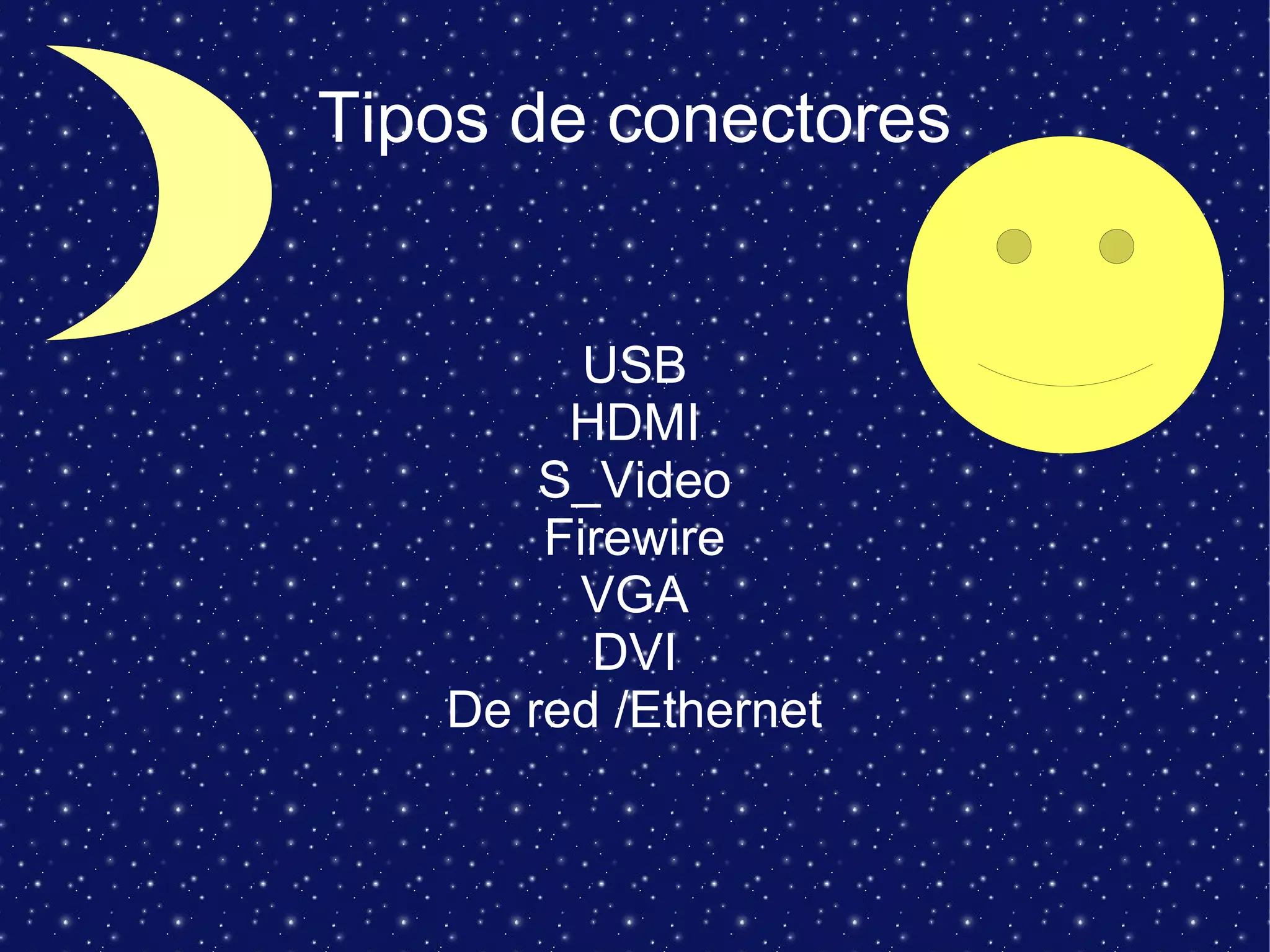 Este documento describe diferentes tipos de conectores, incluyendo USB, HDMI, S-Video, Firewire, VGA, DVI y Ethernet. Define cada uno de ellos, explicando brevemente qué es, su propósito y cómo funciona. USB es un estándar industrial para conectar y proveer alimentación a dispositivos electrónicos. HDMI es una interfaz digital para transmitir audio y video de alta definición. S-Video es un tipo de señal de video analógica. Firewire es un tipo de conexión para transferir datos a alta velocidad. VGA se