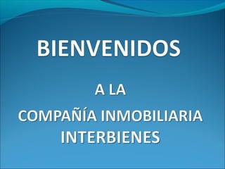 Interbienes es una empresa inmobiliaria en Medellín dedicada a ofrecer servicios de asesoría personalizada y soluciones integrales para satisfacer las necesidades de sus clientes. Su misión se centra en proteger el patrimonio de los clientes y mejorar su calidad de vida, mientras que su visión para 2019 es posicionarse como una de las mejores opciones en el mercado inmobiliario. Ofrecen un portafolio diversificado que incluye arrendamientos, administración de inmuebles, ventas, avalúos y mantenimiento, respaldados por pólizas de seguros para garantizar la seriedad y confiabilidad en sus operaciones.