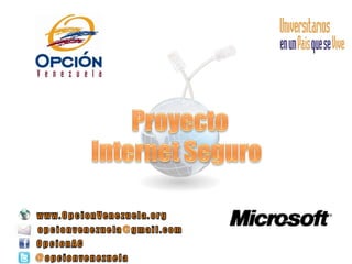 El documento habla sobre los riesgos que conlleva el uso de Internet y la importancia de la educación sobre su uso seguro y responsable, especialmente en niños, niñas y adolescentes. Propone dictar talleres y desarrollar una campaña de "Internet Seguro" dirigida a este público, así como sistematizar la experiencia a través de informes. El plan incluye capacitación, proyectos libres y un informe final para completar 100 horas de servicio comunitario.