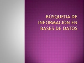Este documento describe los pasos para realizar una búsqueda bibliográfica sobre el tema de la "Utilización de los antibióticos y los antiinflamatorios en la gingivitis y la periodontitis" desde el año 2000. Primero, selecciona las palabras clave antibióticos, antiinflamatorios, periodontitis y gingivitis. Luego, crea una estrategia de búsqueda utilizando paréntesis y truncamiento. Finalmente, realiza la búsqueda en bases de datos como Dialnet y FAMA para encontrar artículos dispon