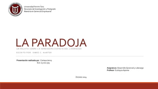 Este documento resume un libro sobre el verdadero significado del liderazgo. Explica que para ser un líder efectivo, uno debe servir a otros a través del amor, la escucha y el sacrificio. También destaca la importancia de crear un entorno que satisfaga las necesidades de los empleados para que puedan desempeñarse al máximo. El verdadero liderazgo se trata de la armonía entre los pensamientos, palabras y acciones de una persona, no del poder o la personalidad.